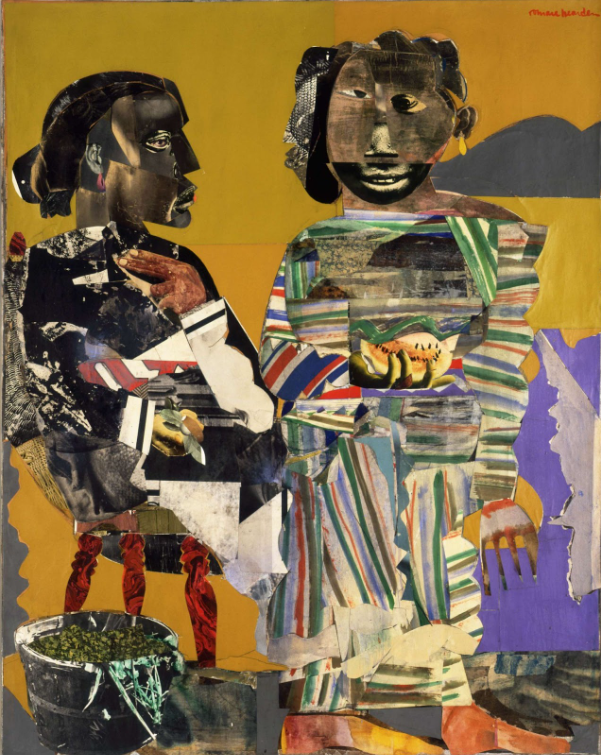 Romare Bearden, Melon Season, 1967, collage of various papers on canvas, 56 ½ x 44 ½ inches (143.5 x 113 cm), Neuberger Museum of Art, Purchase College, State University of New York. Image courtesy of Neuberger Museum of Art, Purchase College, State University of New York © Romare Bearden Foundation / Licensed by VAGA at Artists Rights Society (ARS), NY.